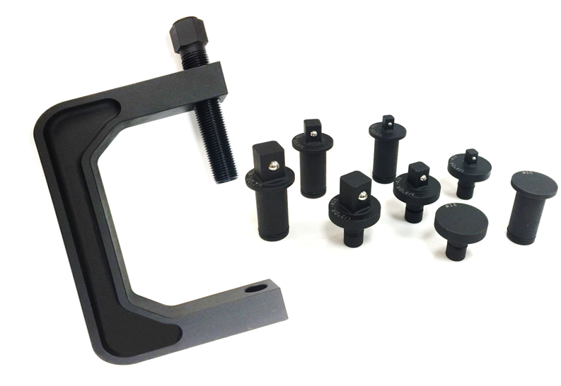 The automotive press can be used for a number of different removal and installation jobs on various driveline and non-driveline related parts. Any socket with 1/4″, 3/8″ or 1/2″ drive can be used in any combination for the use on virtually all cars, ATV/UTV/SxS, light-duty trucks and farm machinery. There are also flat anvils which can be installed into either side of the press for general clamping/pressing.