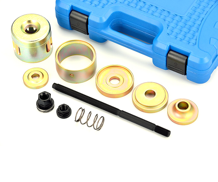 For extracting and inserting silent block bushings on VW T5 rear axle.