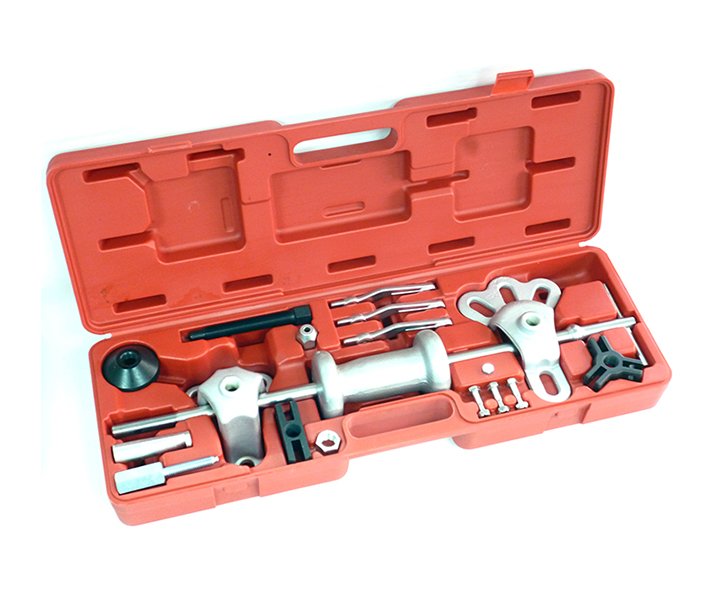 For hand grinding flat head, unslotted valves. Synthetic rubber vacuum cups are resistant to oil, grease and gasoline. Pulls flange-type rear axles and most front-wheel drive hubs. Internal and external jaws provide a variety of combinations to pull bearings, gears and seals. Two and three way cross blocks and cone provide the perfect jaw configuration or most jobs. Set also includes a grip wrench adapter and a dent puller attachment for sheet metal or other unique pulling requirements. Designed for use with other slide hammer attachments.