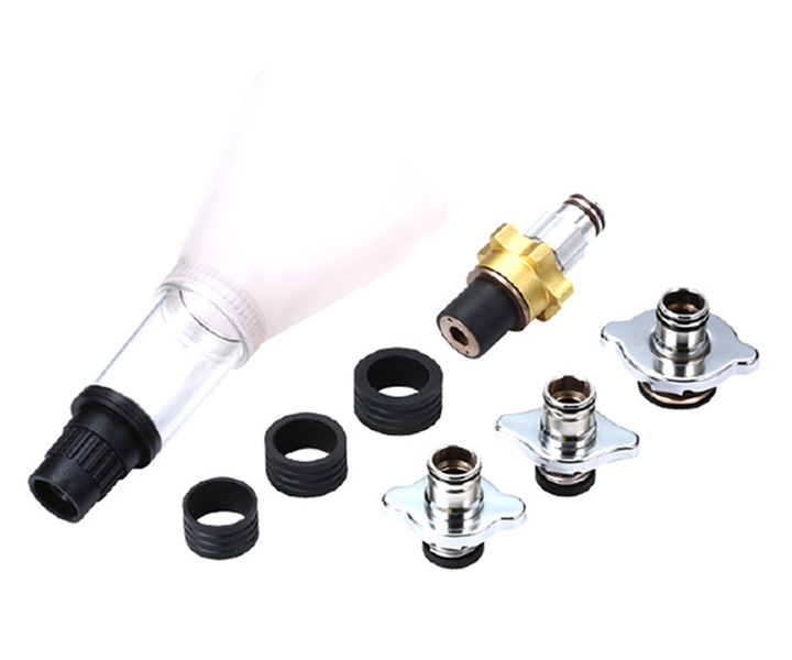 Special funnel design features its spill-free function when disconnecting funnel from radiator adapter.