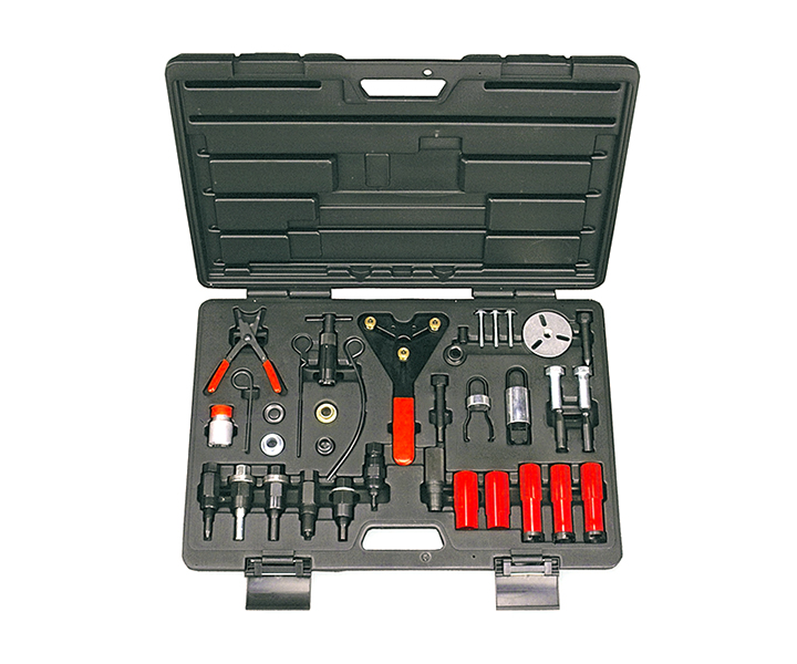 The set includes all the tools from TATTT30001, TATTT30002, TATTT30003, TATTT30004 and TATTT30005 in a blow mold case. Easy to understand instruction manual will show you step-by-step how to service all the popular compressors.