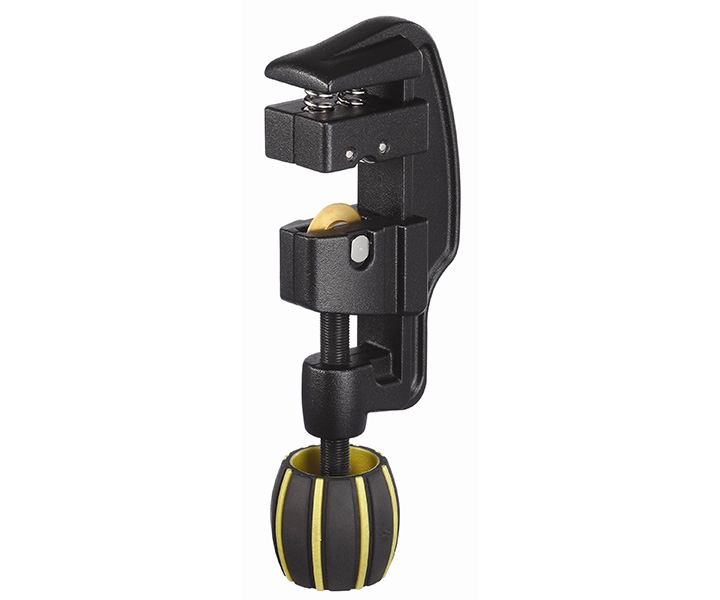 With a spring, constant pressure is applied to the tube. Once tightened, the knob does not need to be adjusted again because the tightness is always maintained. Also, non-round tubes can now be cut because the spring automatically adjusts the blade to the shape of the tube.