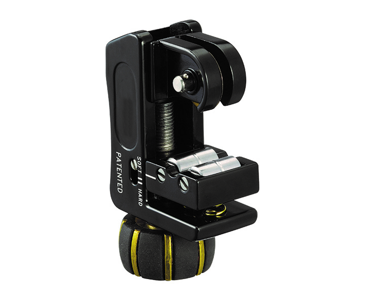 With a spring, constant pressure is applied to the tube. Once tightened, the knob does not need to be adjusted again because the tightness is always maintained. Also, non-round tubes can now be cut because the spring automatically adjusts the blade to the shape of the tube.