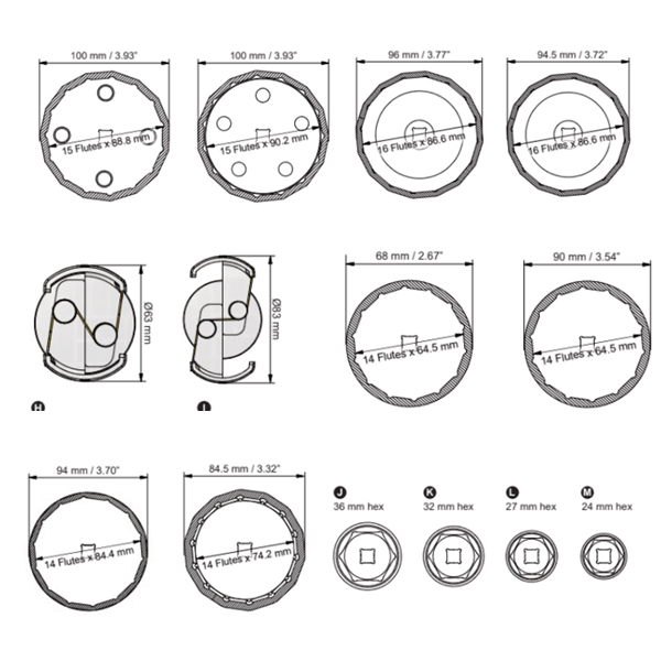 Includes 12 wrench for cartridage filter covers, and 1 universal wrench for oil canisters