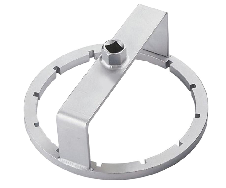 This specialized tool is designed to remove and install the fuel tank locking ring of FCA group and Ford. Also allows the removal of the locking ring without lateral ribs.