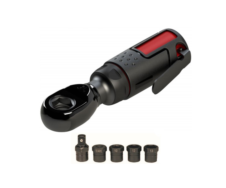 1/4"Bit holder , 3/8" adapter, 10,12,13mm Socket.