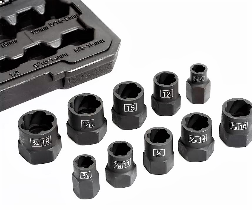 • Twist extractor socket for removing worn, stripped, or rounded off bolts and nuts