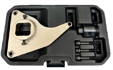 The tool allows the high pressure fuel pump to be pushed out of the pulley with the belt inserted.