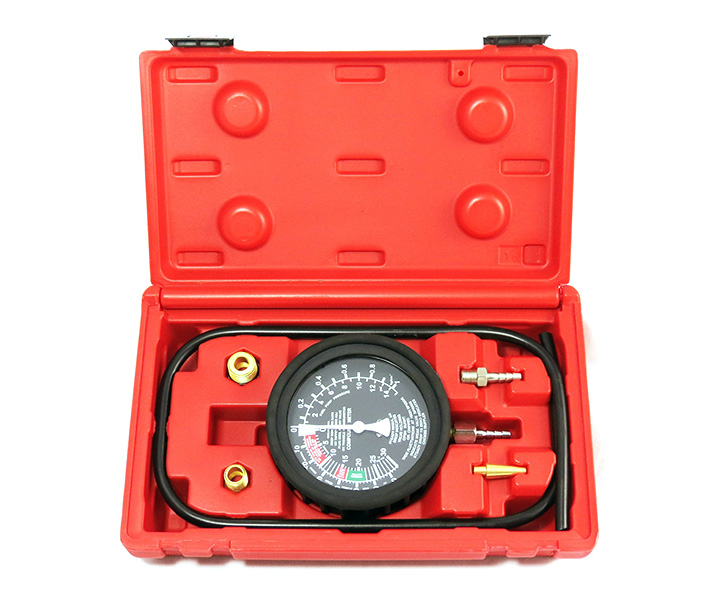 Diagnoses valve leaks, incorrect timing and leaky intake manifold & clogged mufflers.3-1/2"diameter gauge, includes 3 brass fittings and 4' tubing.