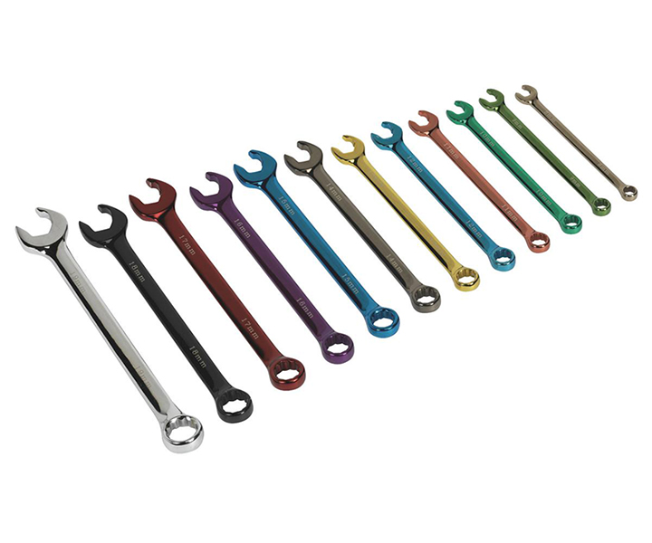 Multi-coloured, drop-forged, Chrome Vanadium steel combination spanners.