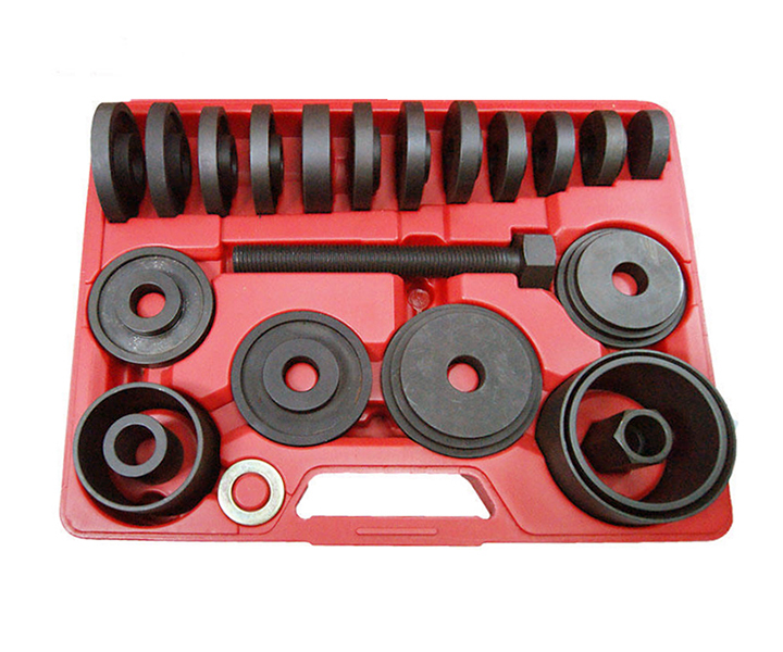 Comprehensive kit of tools for the fast and effective removal and installation of wheel bearings on front-wheel drive vehicles.